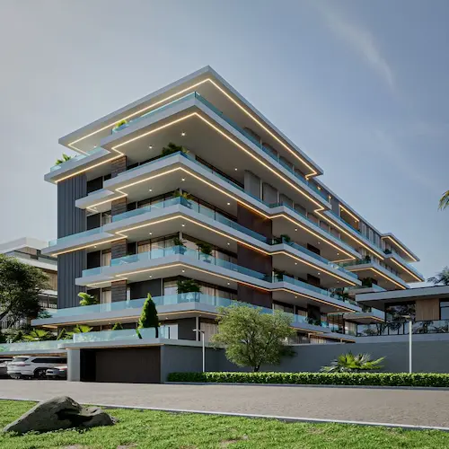 شرفات المباني الواسعة وواجهاتها الفخمة ذات التصاميم العصرية المتناغمة مع أجمل المناظر الطبيعية تشعر السكان بالراحة النفسية والاستجمام، كما تسمح النوافذ الزجاجية بعبور ضوء الشمس للاستمتاع ببيئة صحية مع توفير للطاقة.