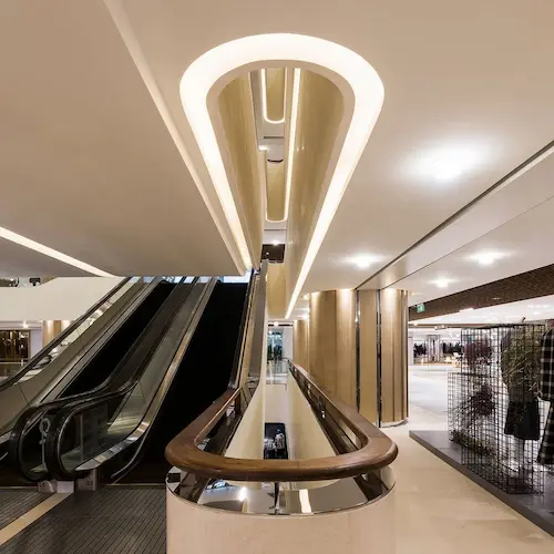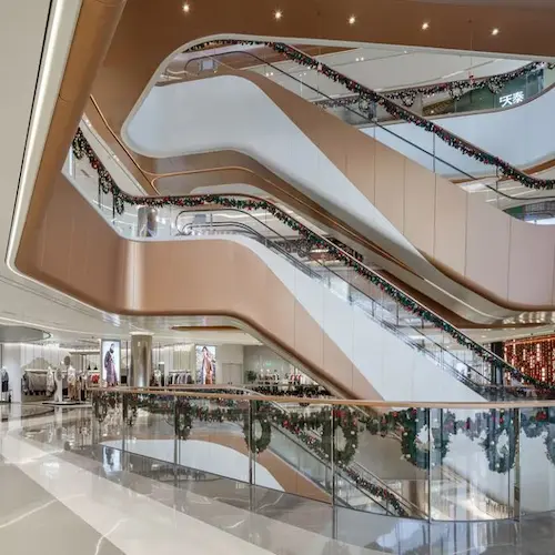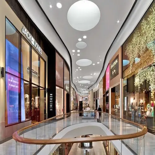 تم تنفيذ الواجهات بلمسات عصرية جذابة تضفي طابع راقي على المكان، كما يعزز التصميم الانسيابي للمول من سهولة التنقل بين الوحدات، ويوفر أقصى استفادة من الإضاءة الطبيعية.