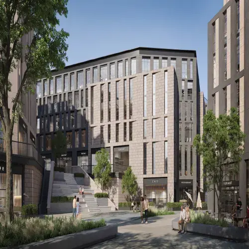 استخدمت الشركة واجهات زجاجية فاخرة تسمح بإعطاء الوحدات إطلالات بانورامية على المناطق الخارجية الخضراء، كما أن هذه الواجهات الزجاجية تسمح بنفاذ الضوء إلى الداخل، مما يعطي الشعور بالراحة والدفء، كما راعت الشركة استخدام أنظمة إضاءة قوية وذكية داخل المشروع لتوفير بيئه عمل مناسبة وأجواء تسوق ممتعة.