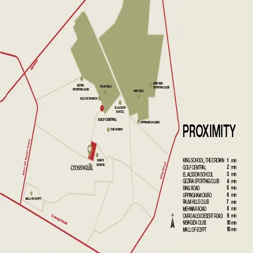 ينفرد كروس ووك مول crosswalk mall بموقع حيوي قريب من جميع الوجهات والمعالم الحيوية في قلب مدينة 6 أكتوبر، والتي منها ما يلي: