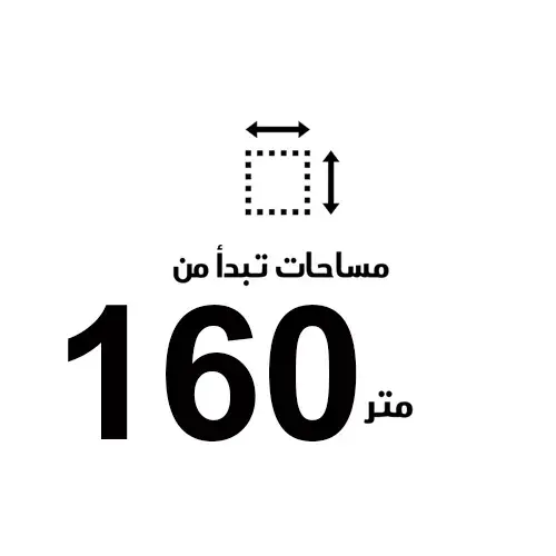 تبدأ مساحات الوحدات من 160 مترا مربعا للوحدات الأرضية، وتصل إلى 185 مترا مربعا للوحدات في الأدوار المتكررة.
