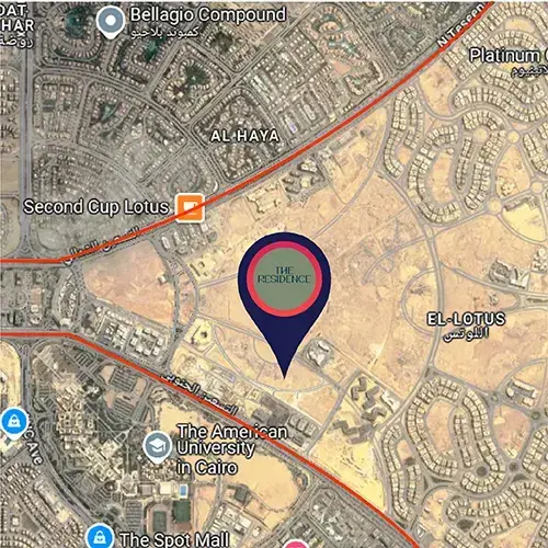 يقع كمبوند the residence new cairo في مدينة التجمع الخامس بالقرب من شارع التسعين الجنوبي والشمالي.